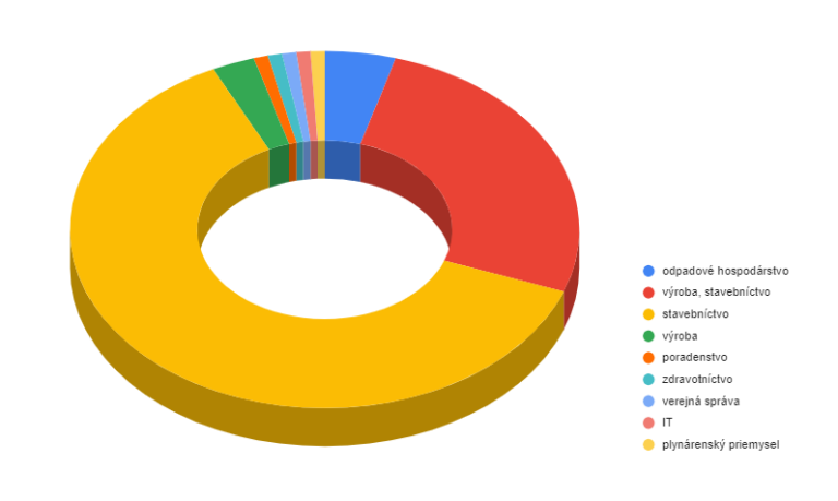Sektorové zastúpenie registrovaných organizácii v schéme EMAS k roku 2023. Organizácie v samotnom stavebnom sektore majú najväčšie zastúpenie 62,2%. Organizácie, ktoré sú vo výrobnom a zároveň aj stavebnom sektore majú zastúpenie 26,1% a v samotnej výrobe je zastúpenie 2,7%. Odpadové hospodárstvo so zastúpením 4,5%, plynárensky priemysel 0,9%, poradenstvo 0,9%, zdravotníctvo 0,9%, verejná správa 0,9% a IT sektor 0,9%.